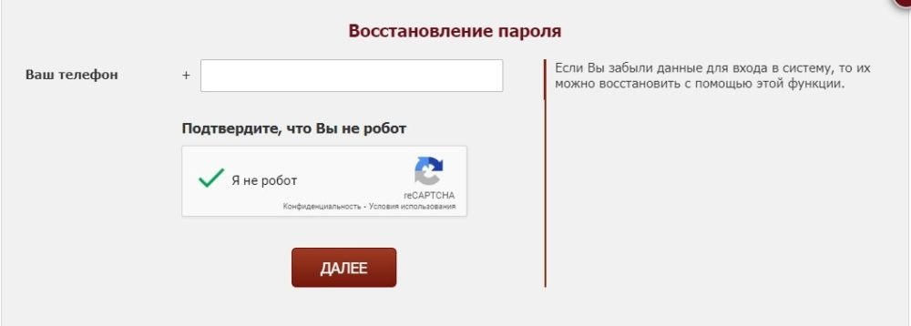 - Нажмите кнопку «Забыли данные?» в правом верхнем углу основного сайта или в окне авторизации в мобильной версии.