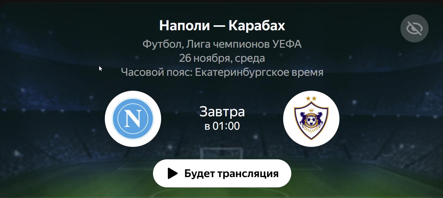 Где смотреть прямой эфир матча «Наполи» — «Карабах» бесплатно