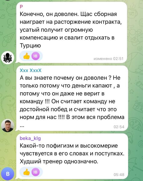 Это вызвало массовое негодование болельщиков: казахстанцы в соцсетях и мессенджерах активно выражают недовольство не столько даже игрой команды, сколько самим тренером.