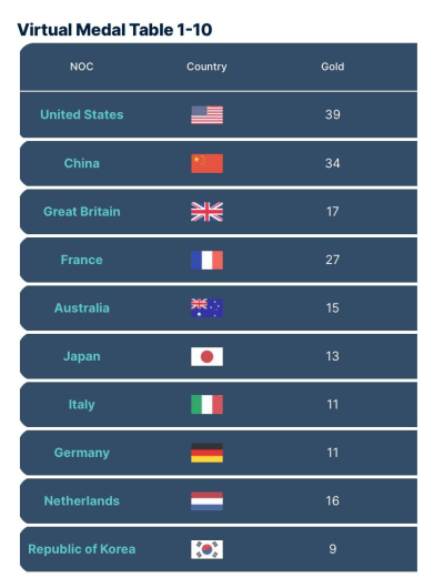 Суперкомпьютер Nielsen Gracenote считает, что победителем ОИ-2024 уверенно станут США, второе место займет Китай, а третье — Великобритания.