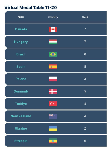 По оценке искусственного интеллекта, наши спортсмены займут 29 место в общем зачете и суммарно возьмут 10 медалей: 2 «золота», 3 «серебра» и 5 «бронз».
