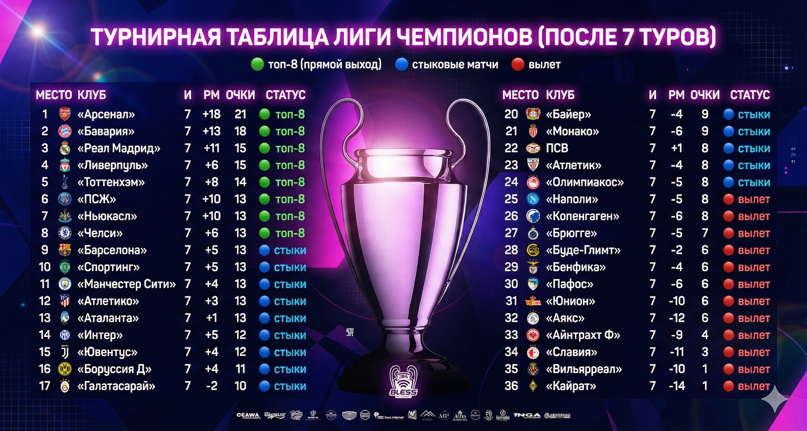 Турнирная таблица Лиги чемпионов (после 7 туров)